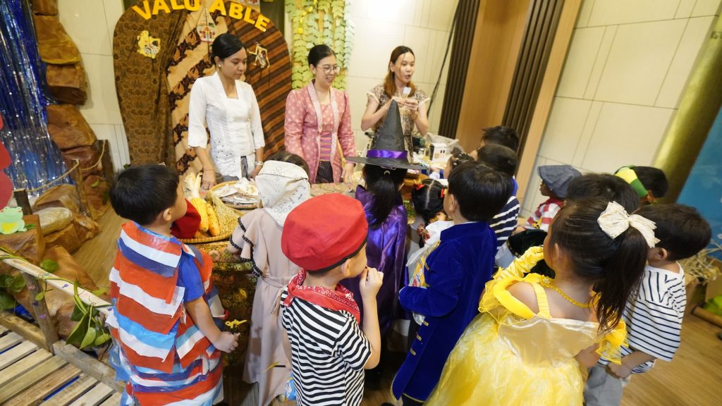 Kunjungan booth menjadi bagian favorit anak-anak. Setiap kelas menjelajahi berbagai cerita dalam bentuk dekorasi dan aktivitas tematik yang disiapkan dengan penuh kreativitas oleh para orang tua. Pengalaman ini tidak hanya memperluas wawasan anak mengenai cerita rakyat, tetapi juga menumbuhkan semangat gotong royong serta keharmonisan antara sekolah dan keluarga.